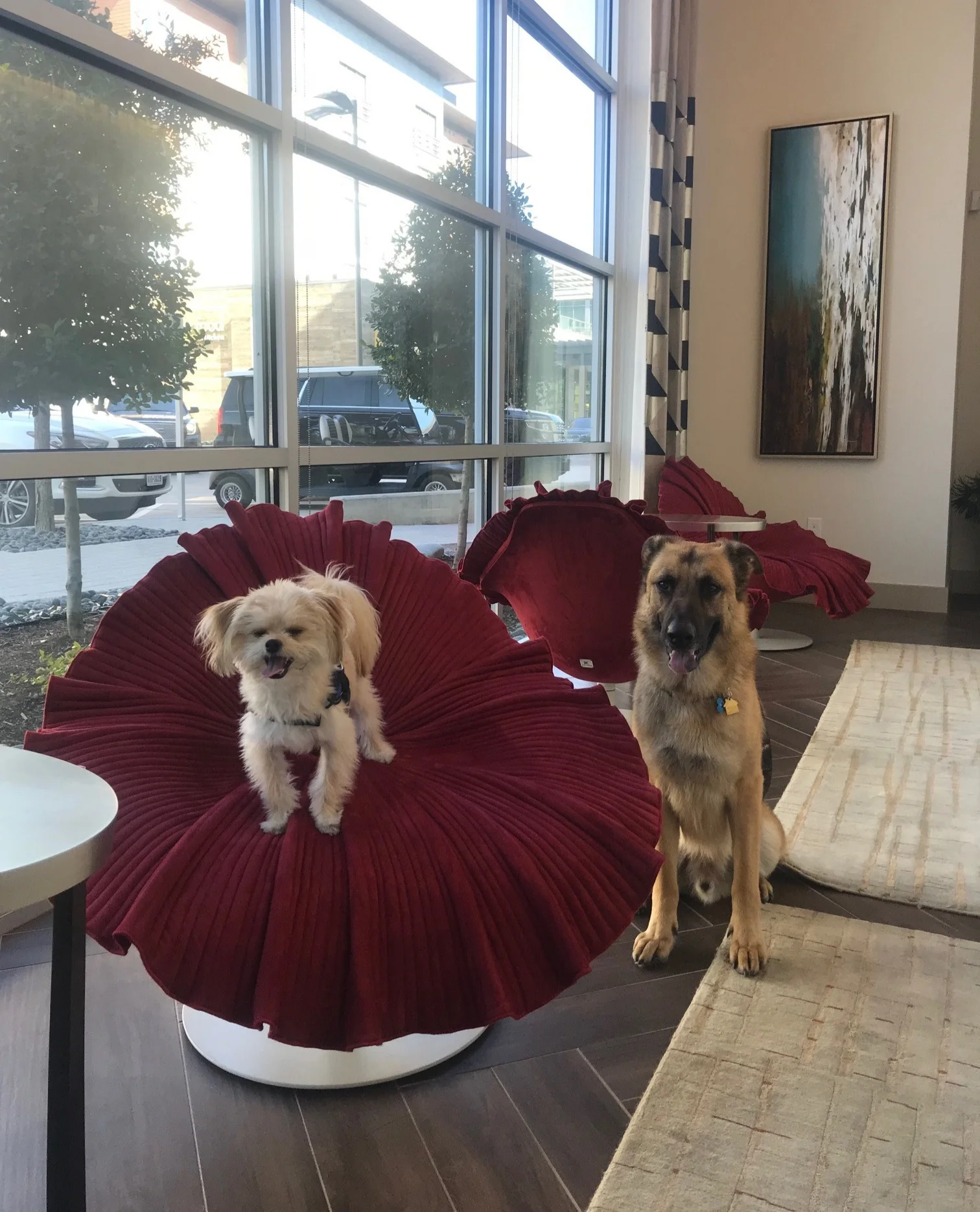 Oso with his buddy Gunner as he excitedly waits to receive the keys to his new luxury apartment at The Grand Legacy West in Plano, Texas!